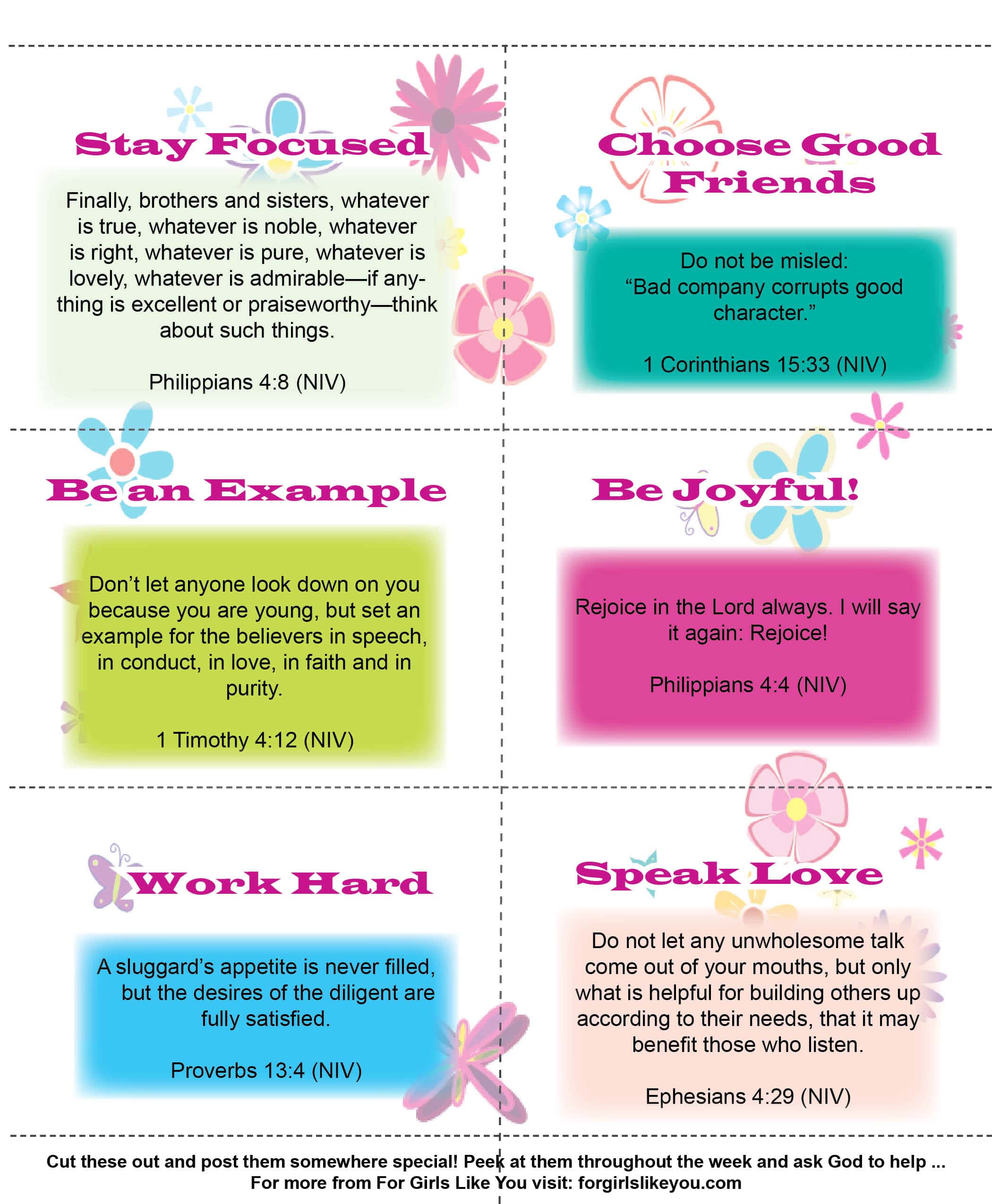 Does your tween want to know scriptures? Help them memorize and apply God’s word with these 6 Scriptures Cards. Download them here and have your children post them around the house, in their school locker or in their closet!