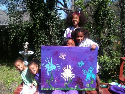 I proudly hung the finger-painted purple masterpiece in our home and to this very day it’s one of the first things I show people when they visit. The girls are so proud of their work.