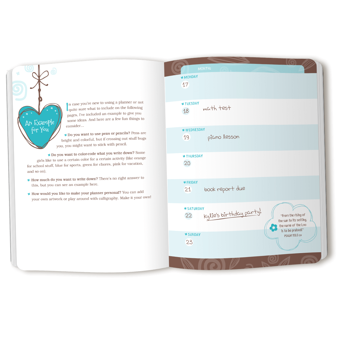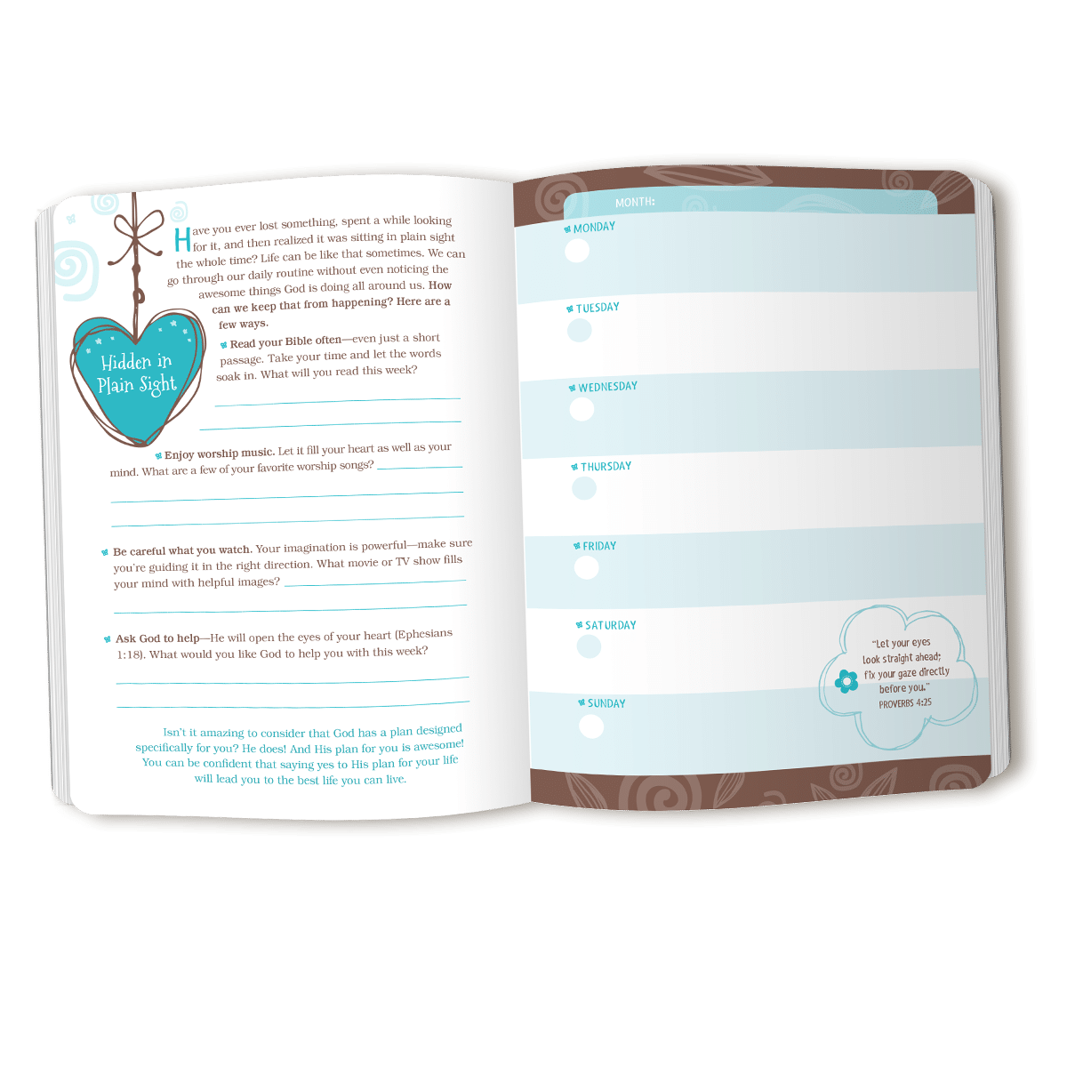 This fun and colorful planner provides more than just a place where your daughter can write down homework assignments, school events, and appointments—it’s designed to encourage her spiritual growth and allow her space to express herself.