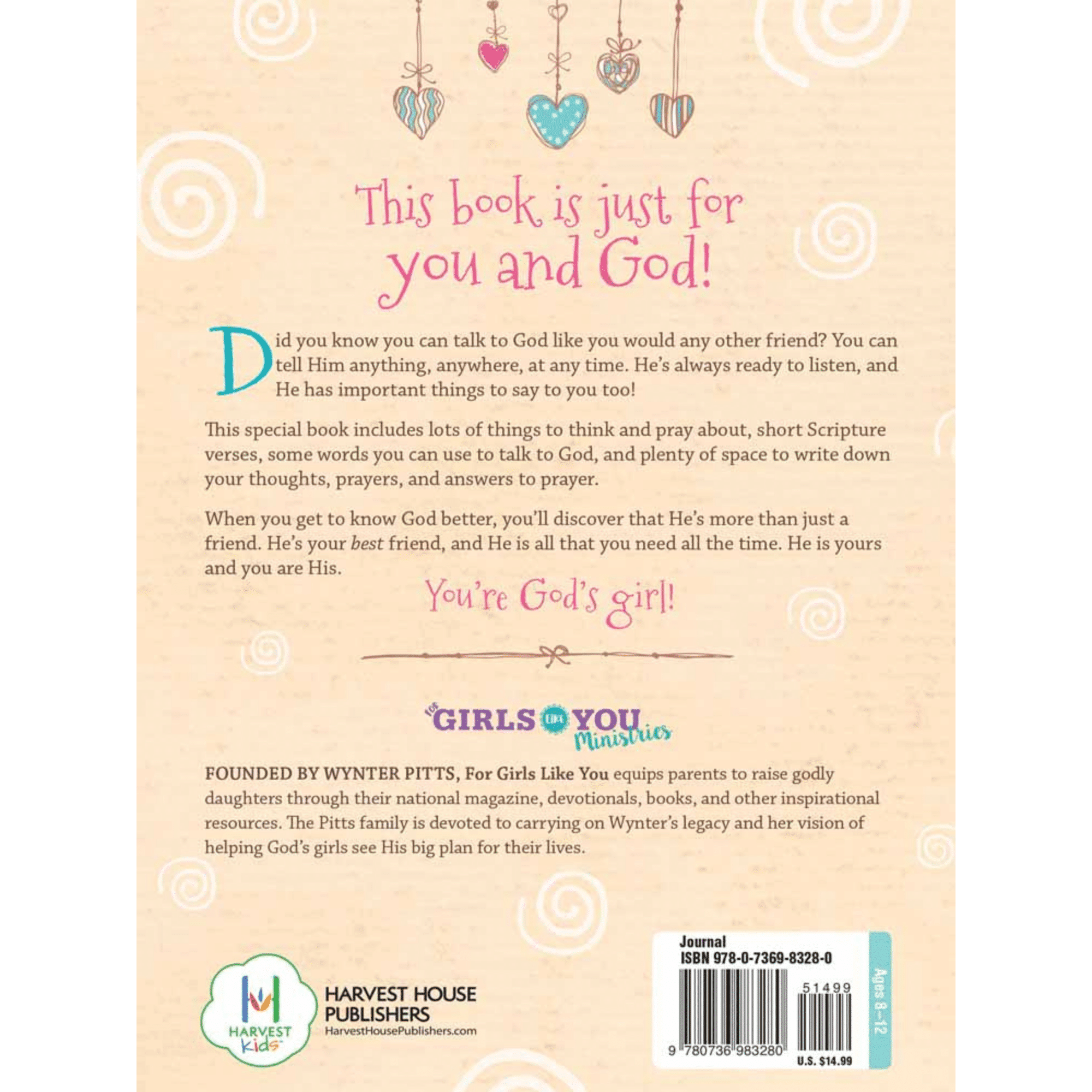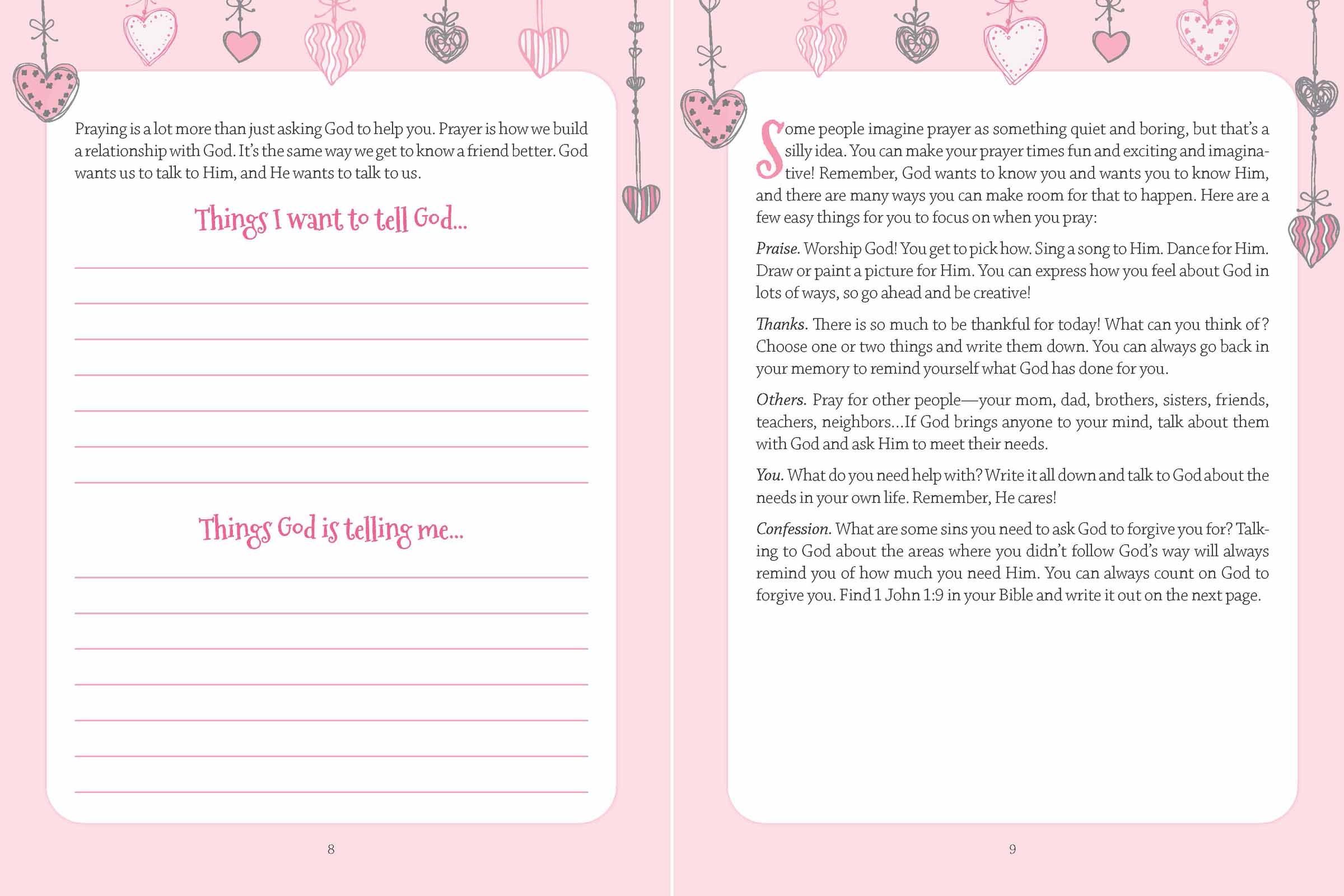 Consistent prayer is one of the keys to a strong relationship with Christ. This journal is designed to give girls ages 8 to 12 a fun and special place to write down their thoughts, prayers, and answers to prayer.